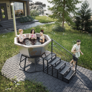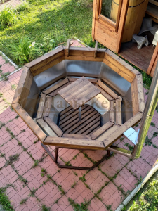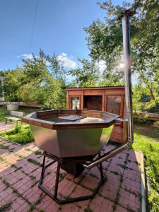 Банный чан из нержавеющей стали Ø-2000 на подставке с приварной печью с водяной рубашкой
