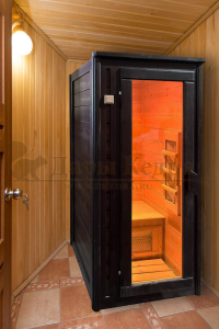 Это специально оборудованная кедровая кабина для прогрева тела человека сухим теплом. Воздух в таких парных не нагревается. Инфракрасные лучи воздействуют на тело, равномерно прогревая мышцы, суставы и органы. Керамические излучатели похожи на лампы, имеют высокую температуру нагрева, поэтому защищены противоожоговыми решетками. Тело человека в таких саунах нагревается интенсивнее. Работает кабина за счет электричества. Компактная одноместная инфракрасная сауна с керамическими излучателями подойдет как для домашнего использования, так и для коммерции.