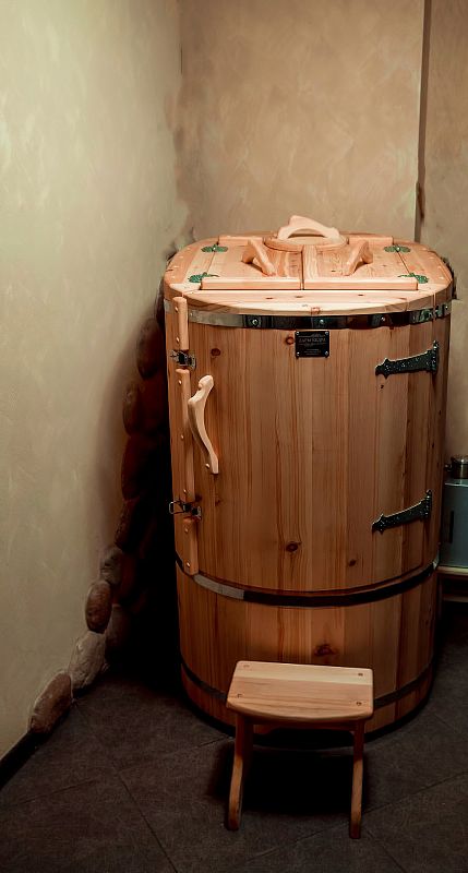 Это специально оборудованная готовая деревянная кабина для сухого и влажного парения. Электропечь нагревает пространство внутри и позволяет сбрызгивать камни водой, слегка увлажняя воздух. Такая процедура позволяет избежать перегрева. Каркас сауны выполнен из массива кедра, снаружи и внутри обшит липовой вагонкой сорта «Экстра» и имеет теплоизоляционный слой. Также двухуровневый полок идёт из кедра для обогащения внутри кабины полезными фитонцидами, а в сочетании с противовирусными свойствами липы сауна становится настоящим источником здоровья.